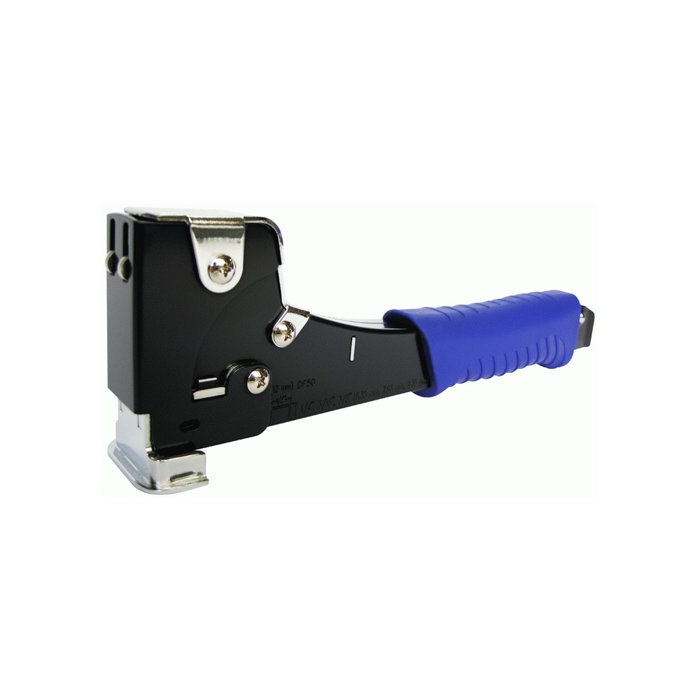 35001 50 Series 1/2" crown hammer tacker, 1/4" to 3/8" lengths. Magazine Capacity 168, Tool Weight: 2lbs 10 oz Applications: Carpeting, Housewrap Installation, Insulation Installation, Poly Sheeting, Roofing, Roofing Felt Installation, Tar Paper